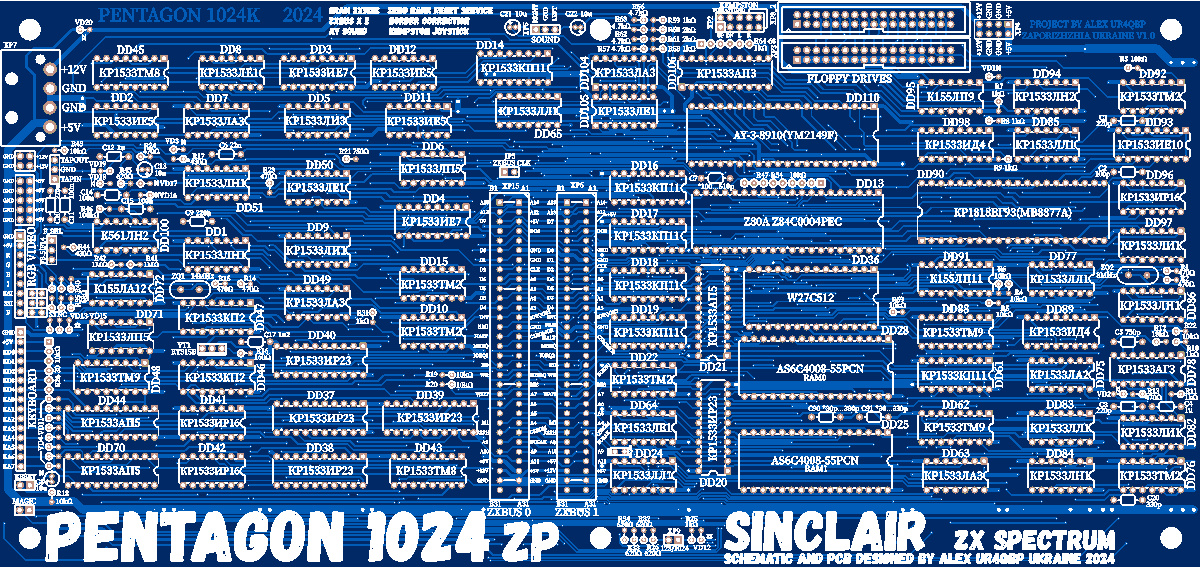 Печатная плата Pentagon128 zp #280(1319) (синяя маска)