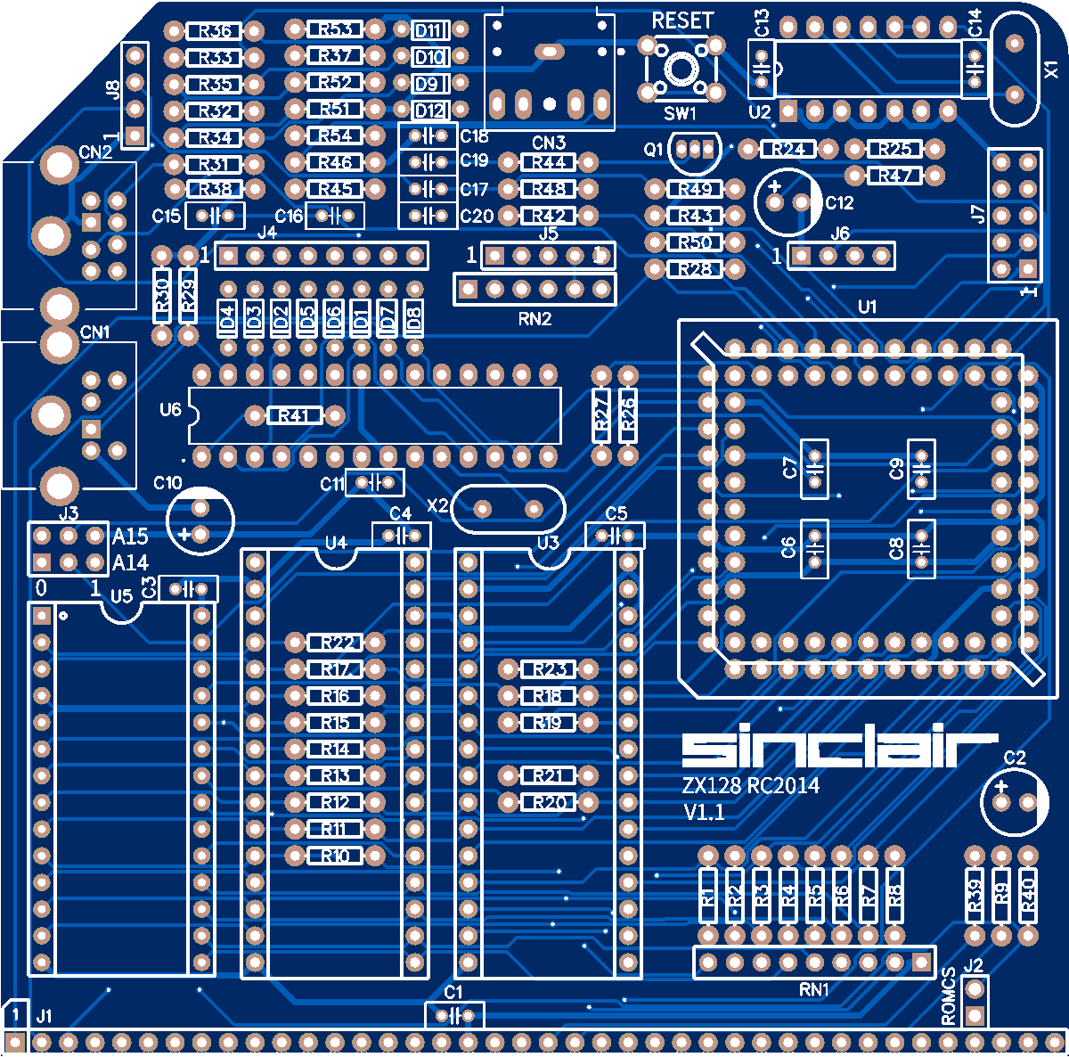 Печатная плата ZX128 — ZX Spectrum 128 RC2014 Card #680(1350) (синяя маска)